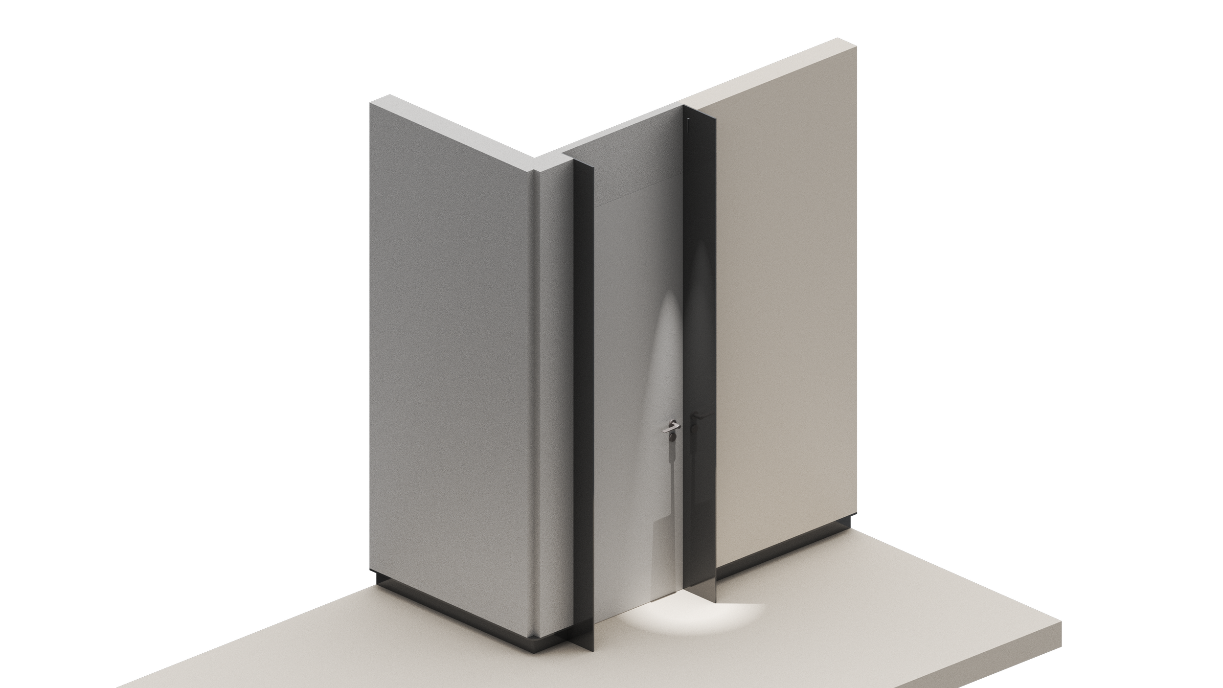 Entrambe le tipologie di porta sono delimitate e marcate da due setti metallici che contengono il numero della camera. Le porte presentano nella parte verso il corridoio la stessa finitura delle pareti, mentre, nella parte interna la stessa delle pareti delle camere. Elemento importante è il faretto che illumina e pone attenzione sulla maniglia.